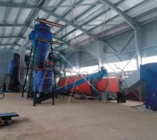В состав входят: сушильный комплекс барабанного типа, участок дробления с молотковыми дробилками, участок прессования с прессом-гранулятором, участок упаковки в мягкие контейнеры (биг-беги).