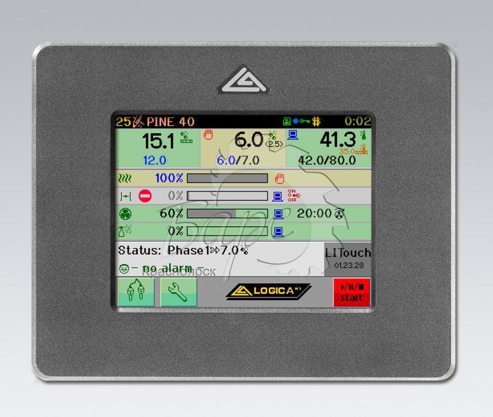 LItouch позволяет оператору записывать и очень сложный цикл сушки, состоящий из 30 этапов. Контроллер управления (управления климатом приоритетных в конце фазы условий) можно настроить индивидуально для каждой фазы, а так же режим приводов управления и желаемого расчёта влажности древесины.